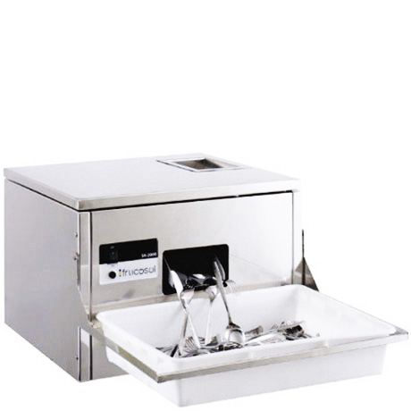 This automatic cutlery dryer machine is designed to dry and polish the cutlery after washing it, getting it brighter and removing the water and lime marks. It dries and polishes automatically your cutlery (not only stainless steel but also silver ones).